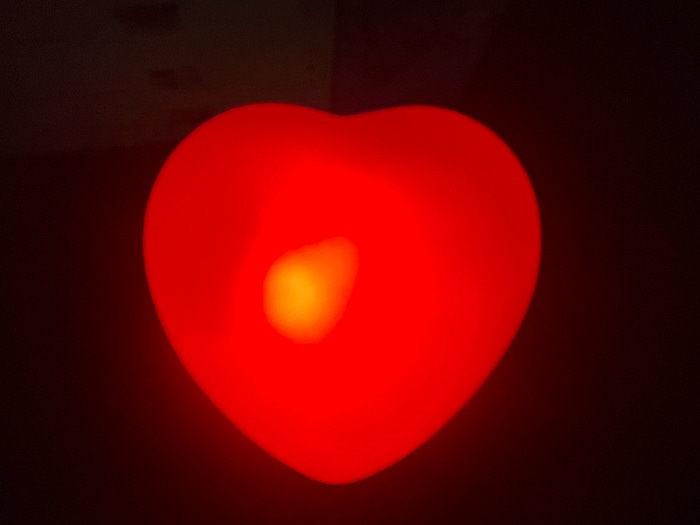 Now whenever I walk past the toy she gave me — which sits on a desk in my living room — I pick it up. I switch the translucent red heart on and off, staring blankly. Most of the time I’m thinking about something else. But sometimes, I do think about that night.
